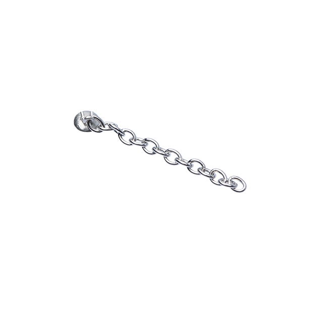 Extrusion chain used to Bondable to Cuspid impacted palatally on labially. The traction chain swings freely within eyelet. The 0.022" inner diameter chain can be tied to the archwire with elastic thread or tubing to provide traction in the desired direction. 3.5mm diameter (Flat)-80 gauge foil mesh base assures reliable bonding. Lower profile limits irritation