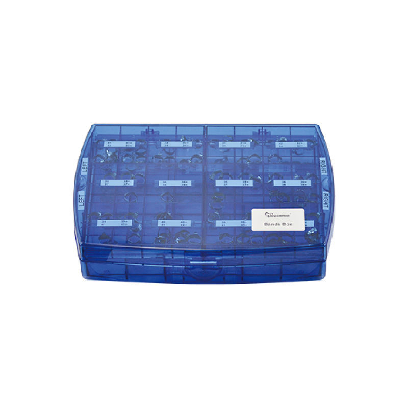 Moalr bandx Container:Blue clear plastic made, reliable quality.Two Drawers, can hold 10 pcs bands in each grid.Bands size from 31~42+Box Size:250*180*50mm